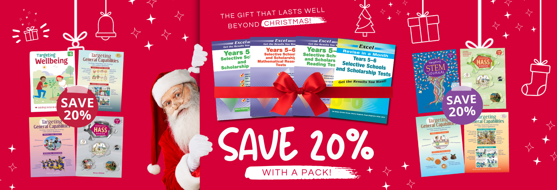 Save 20% with our recommended titles combined into Book Packs ranging from K-Prep - Year 10! Covering a variety of subjects including English, Mathematics, Science, NAPLAN*-style Tests, STEM and HASS.