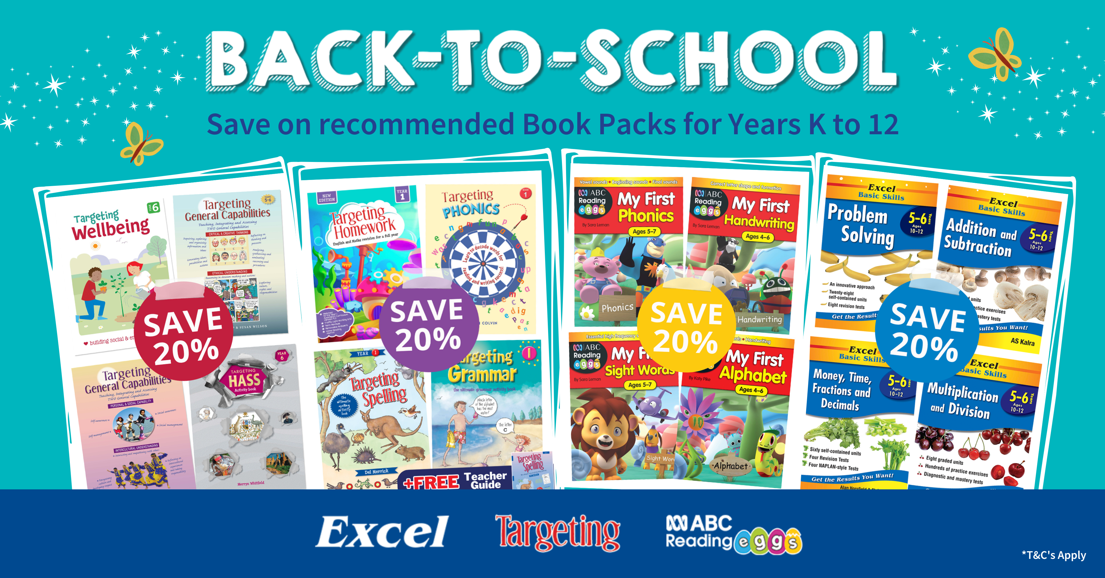 Our Book Packs include well-known brands such as Excel, Targeting,and ABC Reading Eggs which have been written by experienced educators to support the Australian Curriculum.