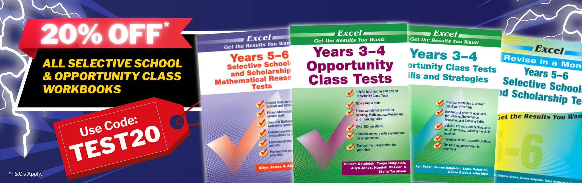Claim 20% OFF* Selective School and Opportunity Class workbooks during our 5-Day Flash Sale! Simply use the coupon code TEST20 at checkout to redeem your exclusive deal.